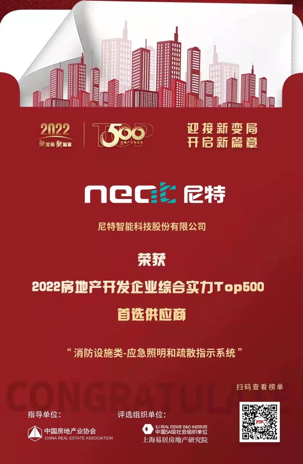恭喜尼特連續(xù)五年獲評(píng)500強(qiáng)地產(chǎn)首選供應(yīng)商殊榮??!智能疏散品類位列榜首?。?!